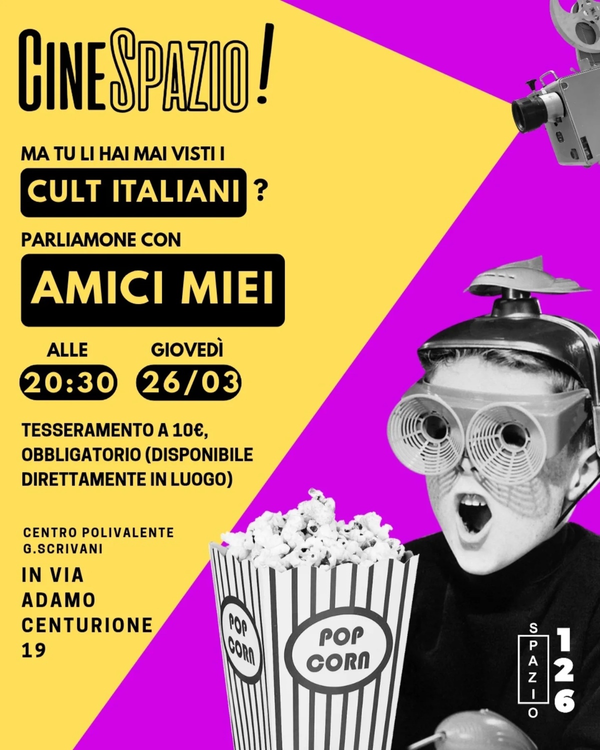 Ci vediamo giovedì 26 Marzo al Polivalente Giovanni Scrivani, in via Adamo Centurione 19 per il terzo appuntamento legato al cinema.
