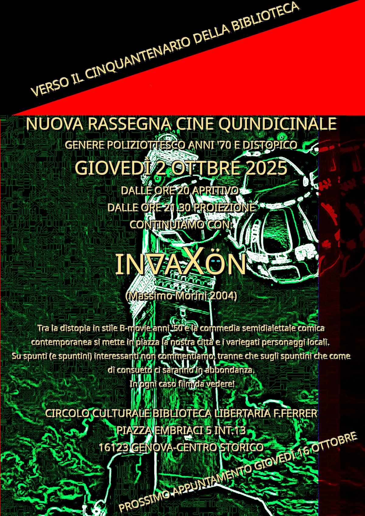 proponiamo una serata distensiva e localmente distopica in stile B-movie: IN∇AXÖN