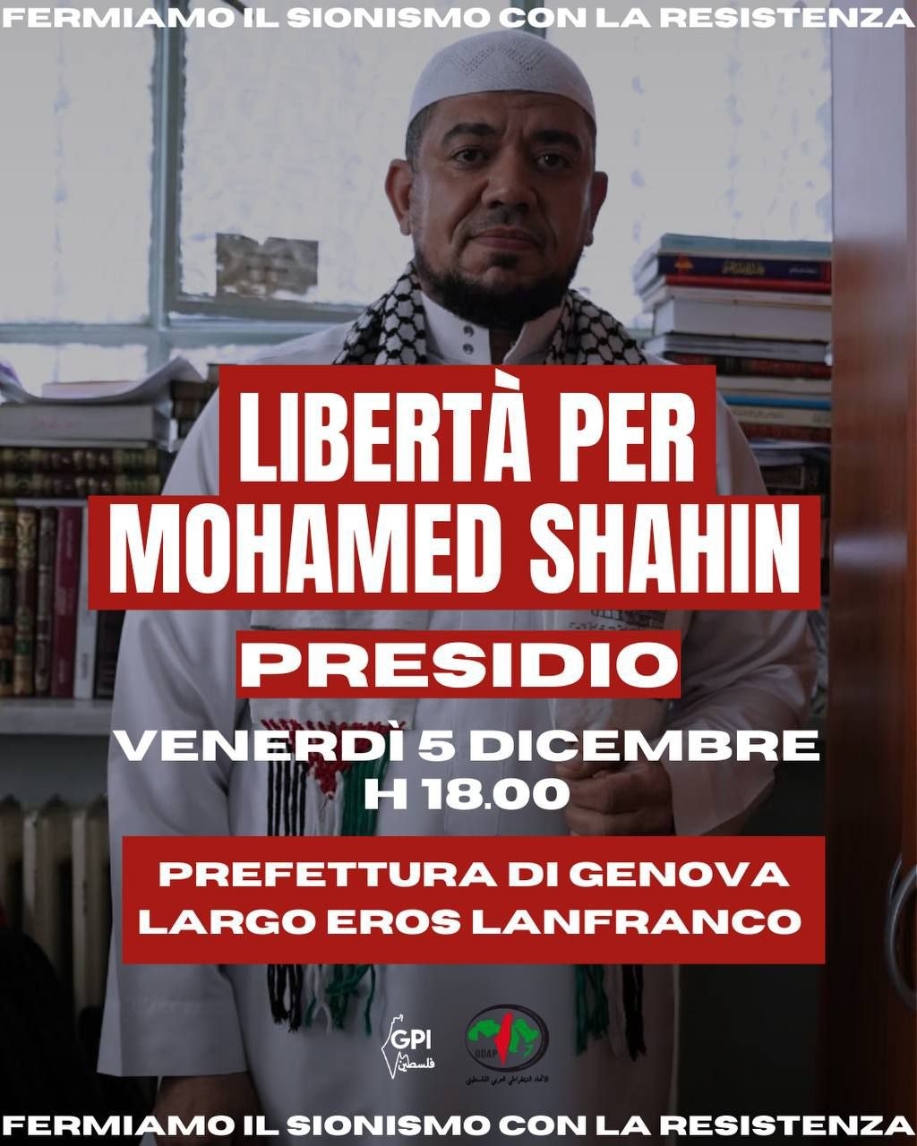 Mohamed Shahin, Imam della moschea Omar Ibn al Khattab di Torino, è stato sequestrato dalla DIGOS il 24 novembre ed è oggi rinchiuso nel CPR di Caltanissetta, strumento di repressione contro migranti e voci ritenute "scomode".